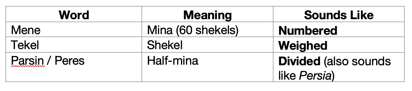 “MENE, MENE, TEKEL, PARSIN.”